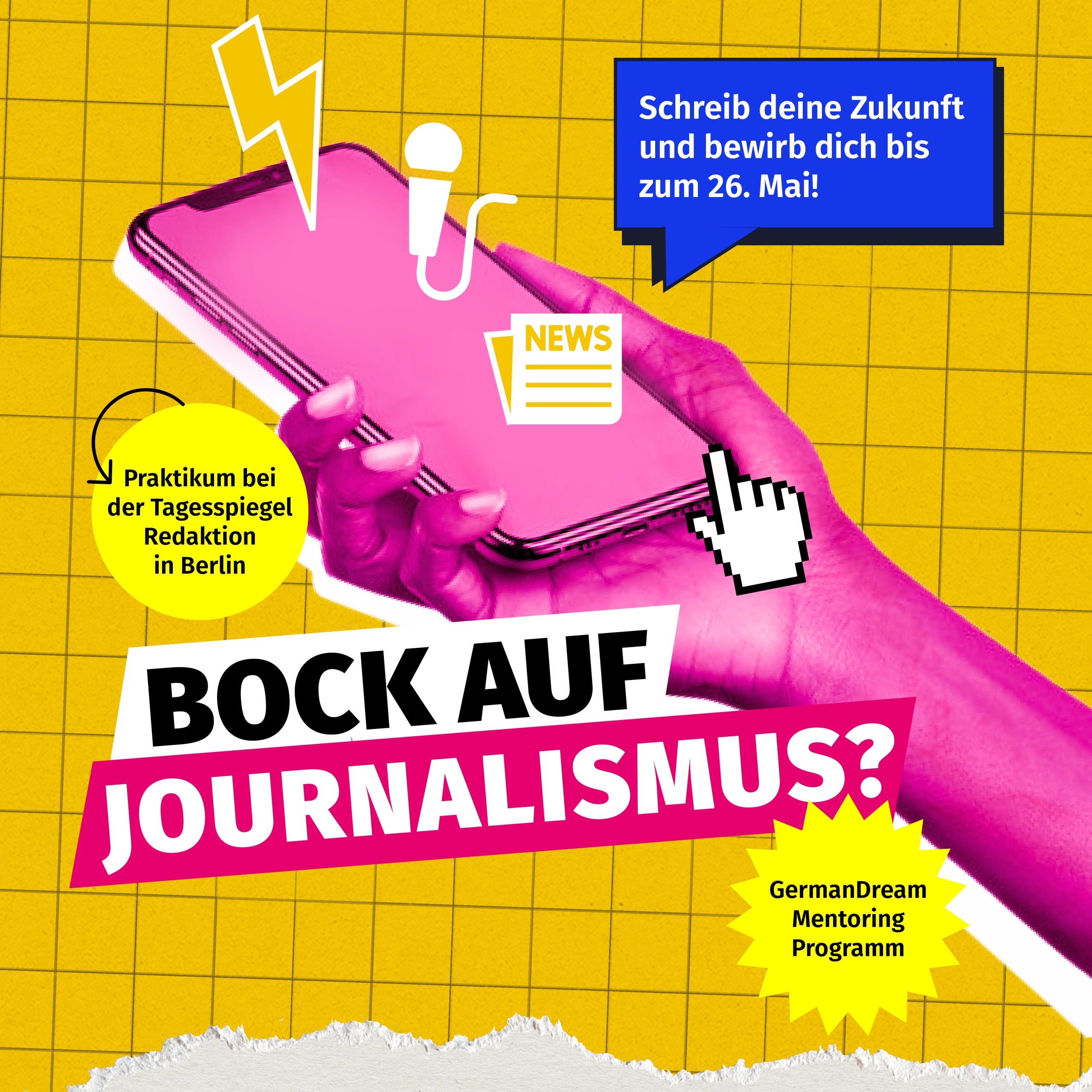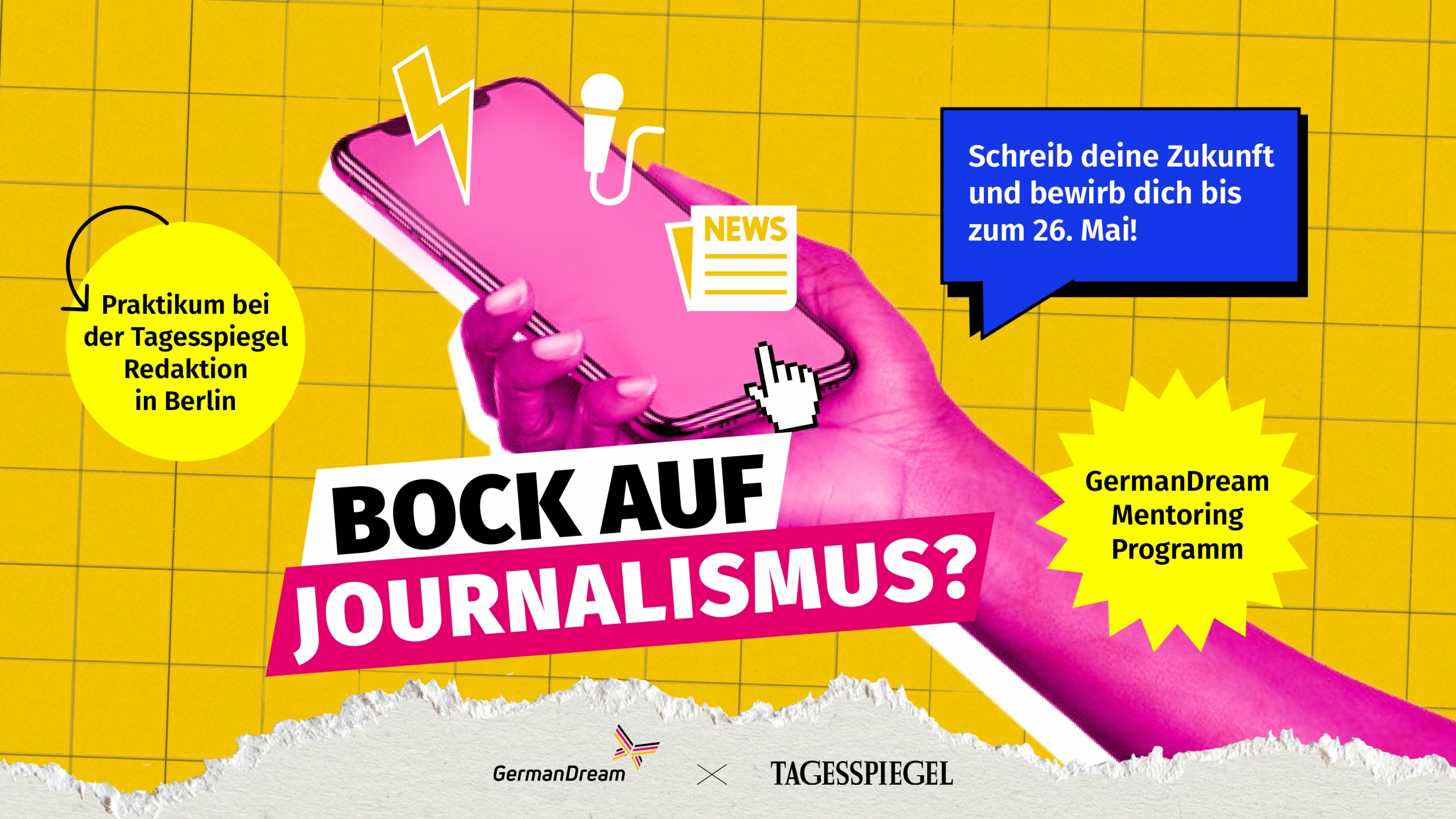 Journalist:innen spielen eine zentrale Rolle in unserer Demokratie, indem sie über politische, wirtschaftliche und gesellschaftliche Entwicklungen informieren. Dennoch ist es für viele Menschen aus marginalisierten Communitys immer noch eine Herausforderung, Zugang zur Journalismus-Branche zu finden. Diverse Stimmen und Lebensläufe fehlen. Um diesem Missstand entgegenzuwirken, haben GermanDream und der Tagesspiegel ein Journalismus-Stipendium ins Leben gerufen. Dieses Stipendium eröffnet dir die Möglichkeit, deinen Traum vom Journalismus zu verwirklichen und die Vielfalt in den Medien zu fördern.
