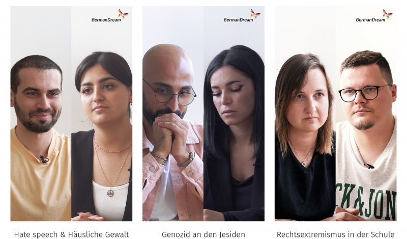 GermanDream ist eine überparteiliche und unabhängige Bildungsinitiative, die sich für die Vermittlung von gesellschaftlichen Werten einsetzt. In unseren Wertedialogen tauschen sich deutschlandweit unsere GermanDream-Wertebotschafter:innen mit jungen Menschen aus. Wir fördern ein Land voller „German Dreamer”, in dem alle mitgenommen werden und die gleichen Chancen haben – unabhängig von Herkunft, Hautfarbe, Konfession oder Lebensentwurf.