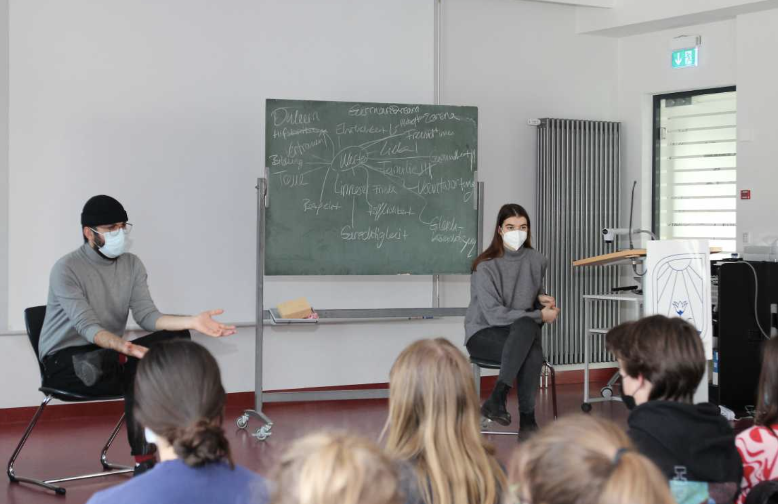 Welche Werte sind jungen Menschen wichtig? Dieser Frage stand im Mittelpunkt der Wertedialoge, die an verschiedenen Klassen geführt wurden. Drei Wertebotschafter und zwei Moderator*innen der Bildungsinitiative GermanDream waren nach Königsfeld gekommen, um mit Schüler*innen der beruflichen Gymnasien und der Fachschulen für Sozialwesen bzw. Sozialpädagogik über Hoffnungen, Ziele und Chancen zu sprechen.