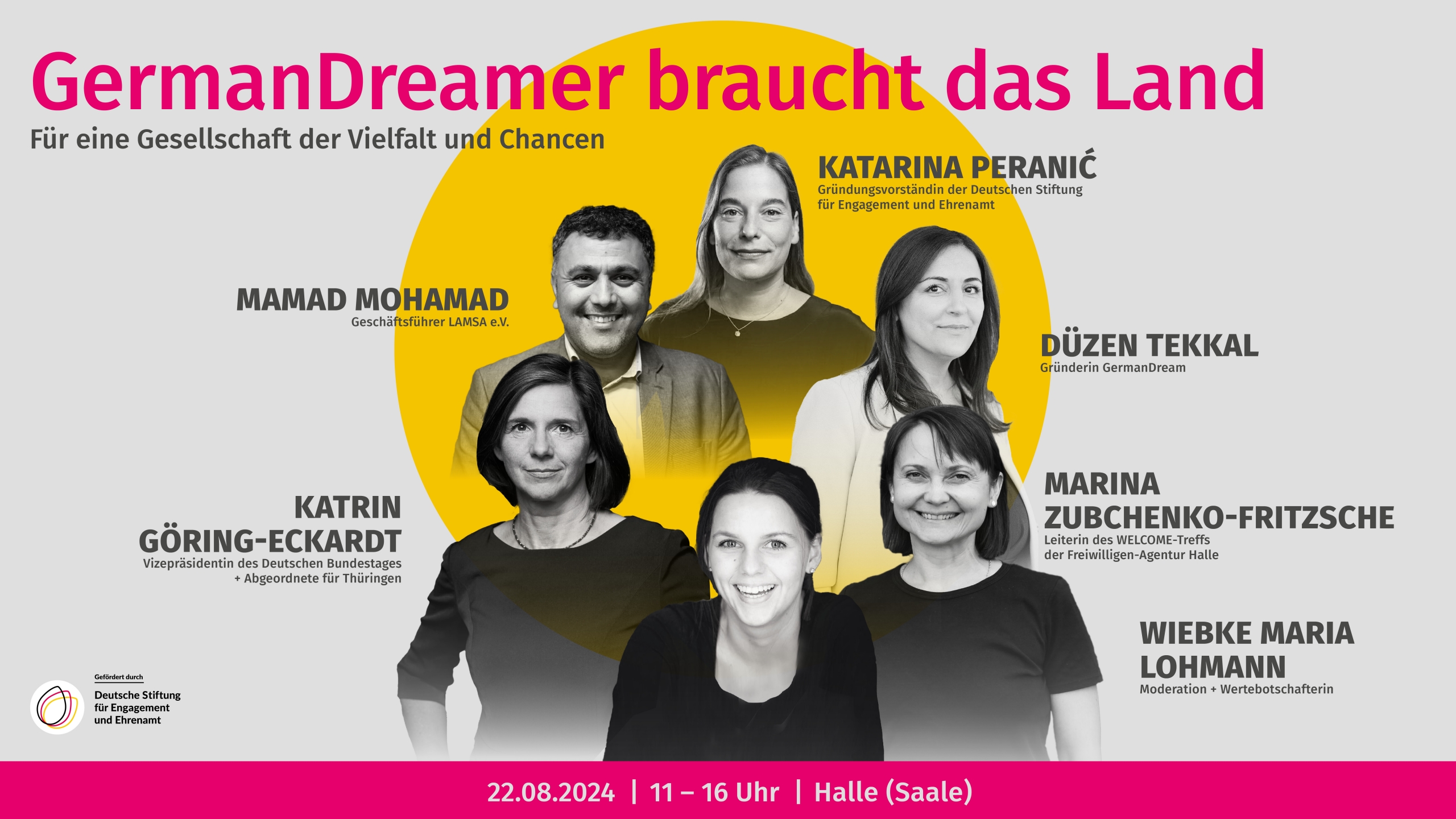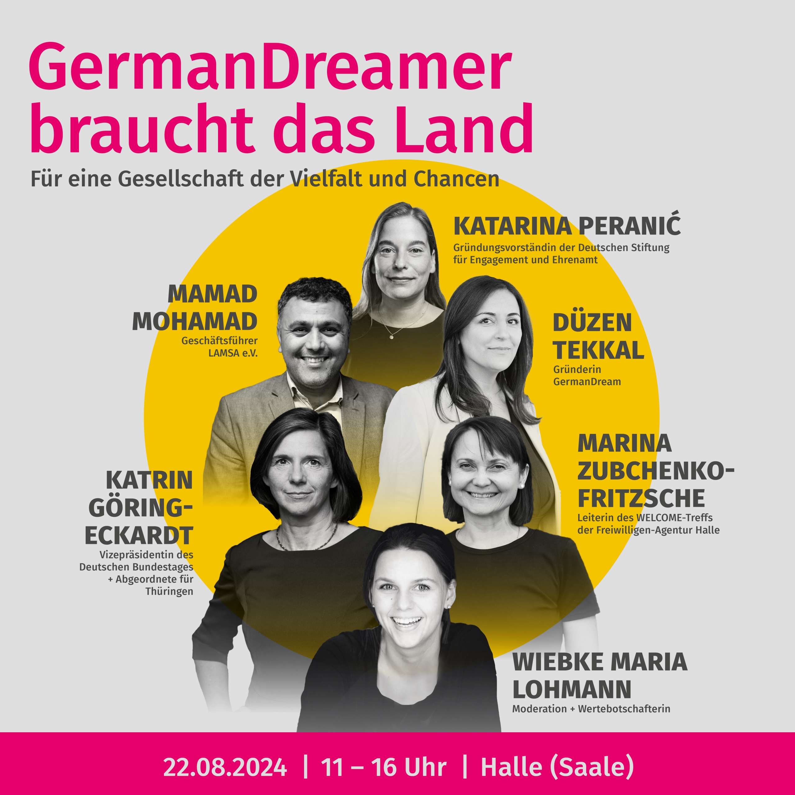 Unsere Demokratie braucht uns! Bei “GermanDreamer braucht das Land” bringen wir die Teilnehmenden unserer Veranstaltung zusammen mit wichtigen Entscheidungsträger:innen aus Bundes- und Kommunalebene sowie lokalen zivilgesellschaftlichen Initiativen und Akteur:innen, um gemeinsam Antworten zu finden. Sei dabei und diskutiere mit uns darüber, wie Politik und Engagement effektiv ineinandergreifen können, um eine Gesellschaft zu schaffen, in der sich alle zugehörig fühlen.