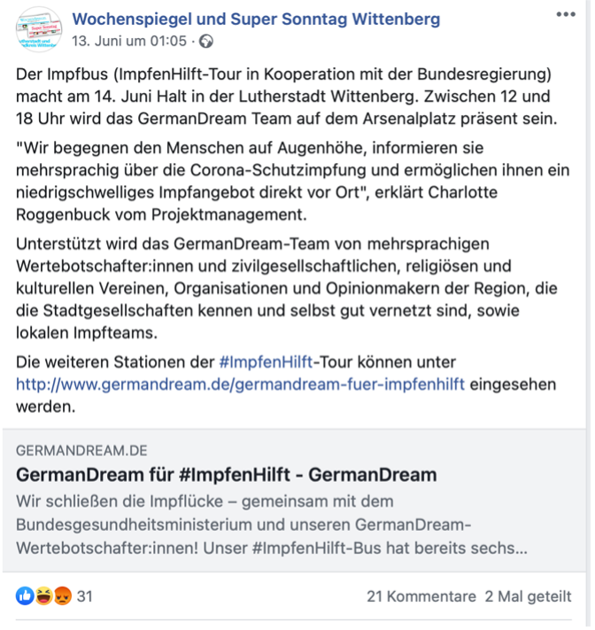 Wir danken insbesonders unseren tollen Wertebotschafter:innen für ihren Einsatz – ohne euch wäre unsere #ImpfenHilft-Tour nicht möglich!