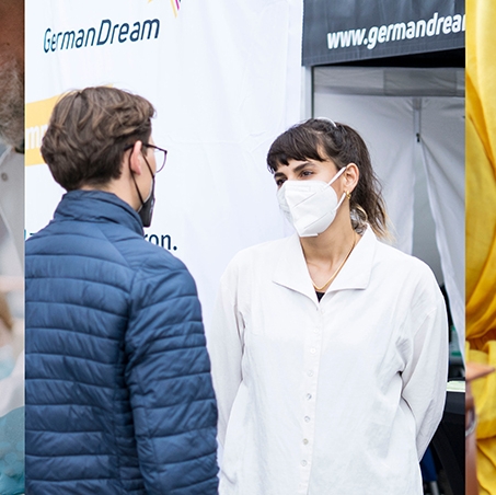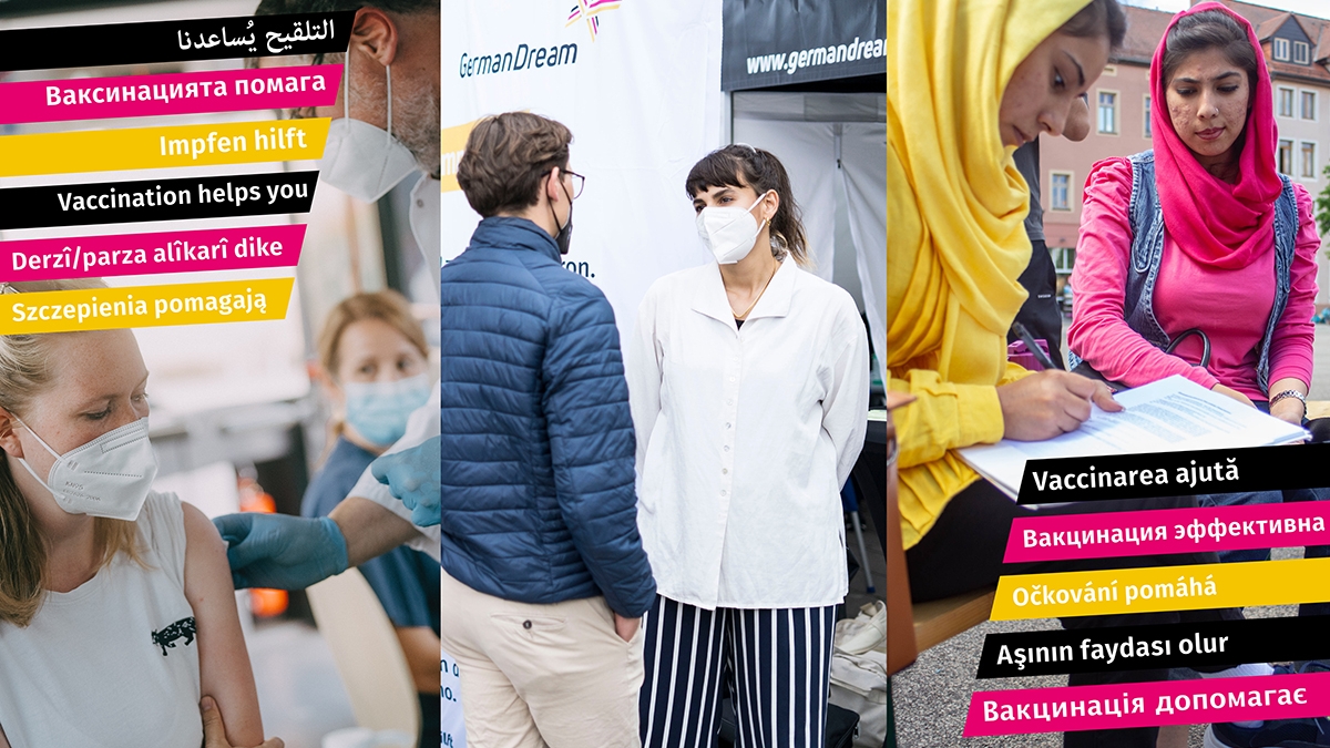 Koruyucu korona aşısına dikkat çekmek amacıyla, 2022 Aşılama Turnesi’nde ulaştığımız başarıları kaldığımız noktadan devam ettirmek için insanlara yerelde ve yaşadıkları ortamda ulaşarak hizmet veriyoruz – hem de bu hizmeti kolayca erişilecek şekilde ve çok dilli sunuyoruz! Eğitim inisiyatifinin organize ettiği Aşının Faydası Olur Turne Otobüsü, geçtiğimiz yıl Almanya çapında 40 durağa uğradı. GermanDream’ın elçileri bu organizasyon kapsamında insanlarla aynı göz hizasında buluşarak, onlarla koruyucu korona aşısı, bu konuda taşıdıkları çekinceler ve kaygılar hakkında konuşuyor.