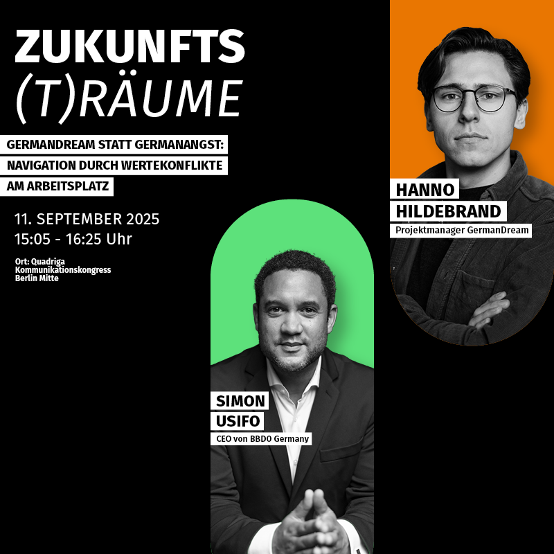 Beim dritten GermanDream Jam unserer Veranstaltungsreihe ZUKUNFTS(T)RÄUME gehen wir diesen Fragen nach. Wir laden dich ein, darüber nachzudenken, wie Werte Orientierung geben, wie wir mit Spannungen umgehen können – und warum es manchmal Mut braucht, die eigene Haltung sichtbar zu machen.