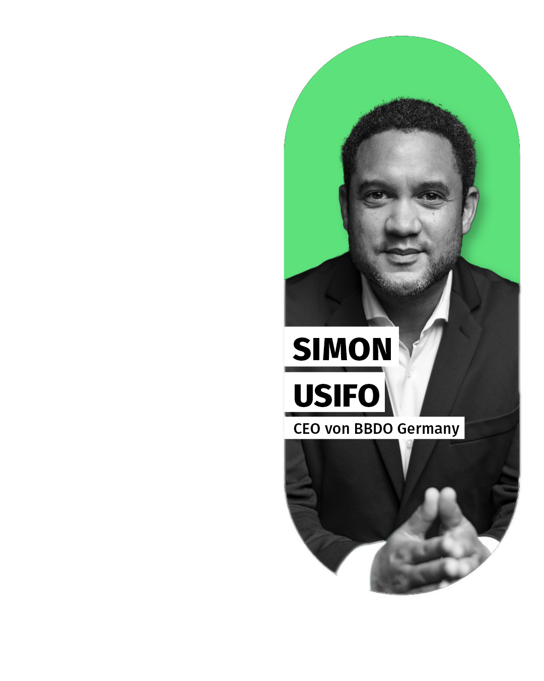 Simon wurde in Bonn geboren, als Sohn eines nigerianischen Vaters und einer französischen Mutter. Er wuchs im Rheinland auf und studierte in Köln Medienwirtschaft. Seit 2024: CEO der Deutschland-Geschäftsführung der internationalen Kreativ- und Werbeagentur BBDO in Düsseldorf. Außerdem ist Simon Co-Herausgeber und Autor des Antirassismus-Buches und SPIEGEL-Bestsellers „People of Deutschland“. Er ist zudem auch als Wertebotschafter für unsere Bildungsbewegung im Einsatz.