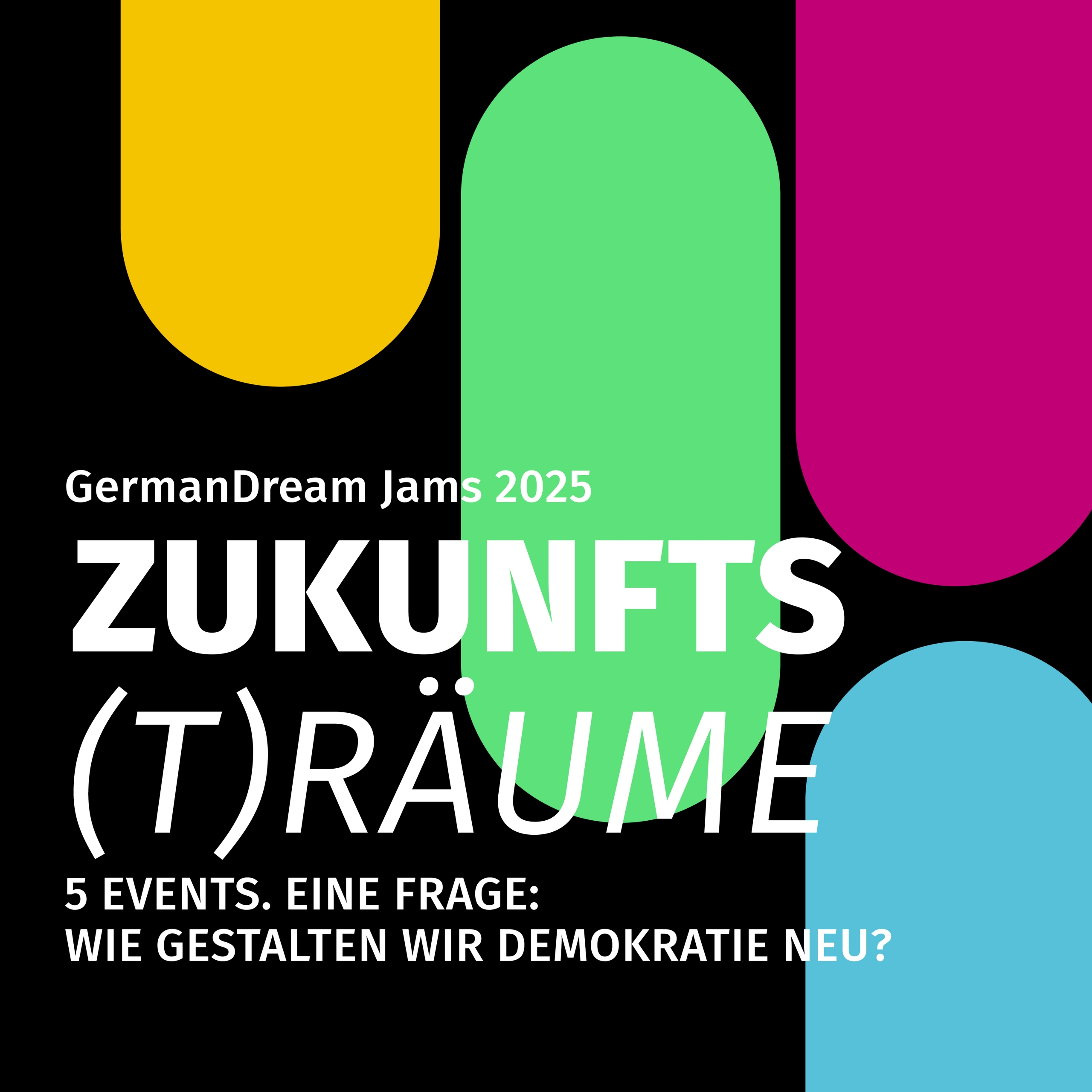 Die GermanDream Jams sind Teil des Projekts ZUKUNFTS(T)RÄUME – Ein Projekt für Dialog, Demokratie & Engagement. Hier findest du weitere Informationen, Hintergründe und Formate, die gemeinsam demokratische Zukunft erlebbar machen.