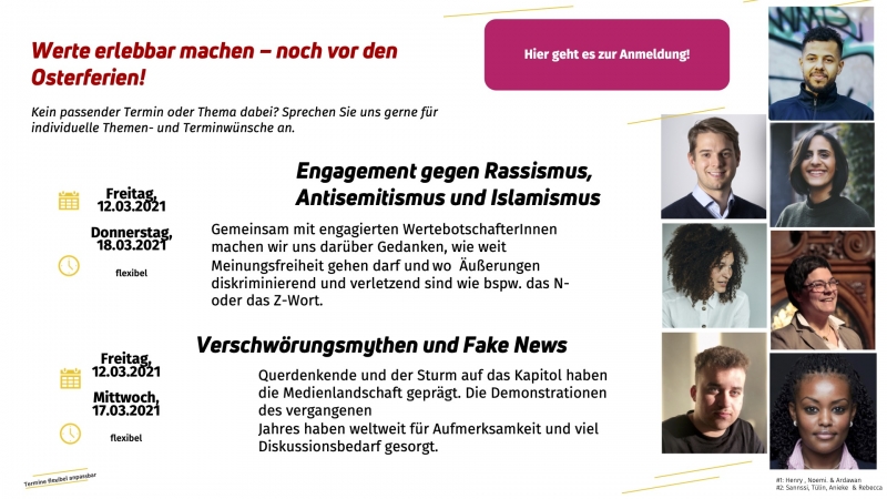 Themen & Termine im März: Der Frühling kommt, die virtuellen Wertedialoge gehen weiter!