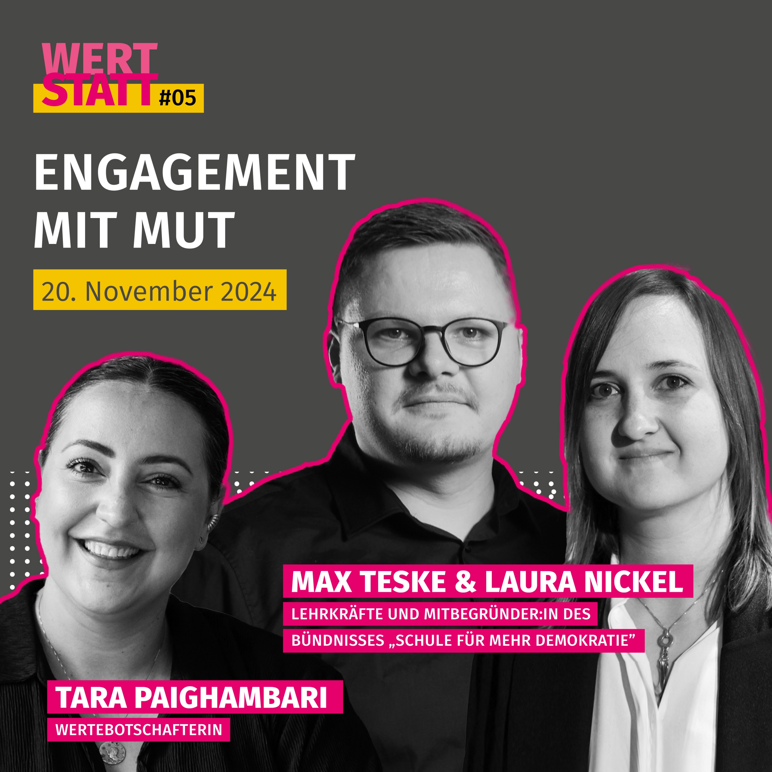 Begleitet wird diese WERTstatt von einem fühl_ich zwischen unseren großartigen Wertebotschafter:innen Tara Paighambari und Mohammad Eibo.
